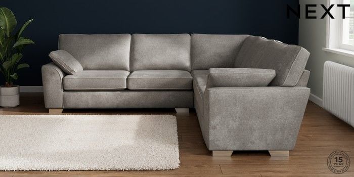 7.2.10 Buy Stamford Large Corner Sofa - Universal Plush Chenille Light Grey Large Square Angle - Chrome Metal from the Next UK online shop Click here to use our accessible website