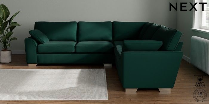 7.2.10 Buy Stamford Large Corner Sofa - Universal Plush Velvet Easy Clean Bottle Green Large Square Angle - Chrome Metal from the Next UK online shop Click here to use our accessible website
