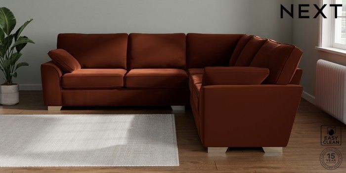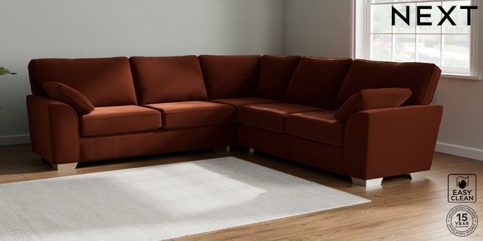 7.2.10 Buy Stamford Large Corner Sofa - Universal Plush Velvet Easy Clean Ginger Orange Large Square Angle - Chrome Metal from the Next UK online shop Click here to use our accessible website