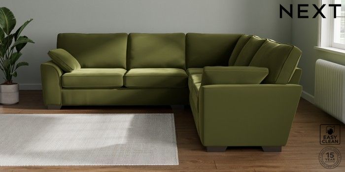 7.3.1 Buy Stamford Large Corner Sofa - Universal Plush Velvet Easy Clean Mid Olive Green Large Square Angle - Gunmetal from the Next UK online shop Click here to use our accessible website