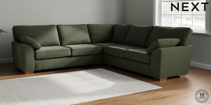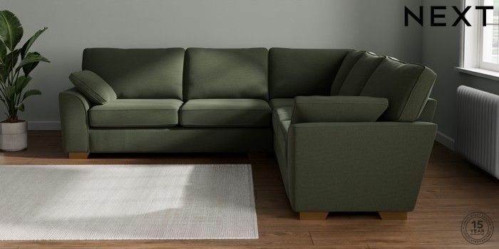 7.3.1 Buy Stamford Large Corner Sofa - Universal Relaxed Linen Look Dark Green Large Square Angle - Brushed Brass from the Next UK online shop Click here to use our accessible website