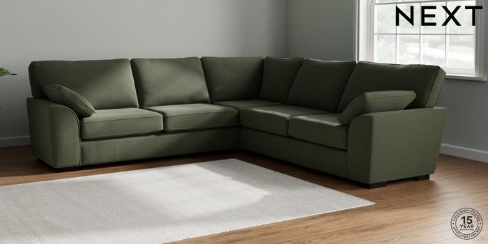 7.2.10 Buy Stamford Large Corner Sofa - Universal Relaxed Linen Look Dark Green Large Square Angle - Dark from the Next UK online shop Click here to use our accessible website