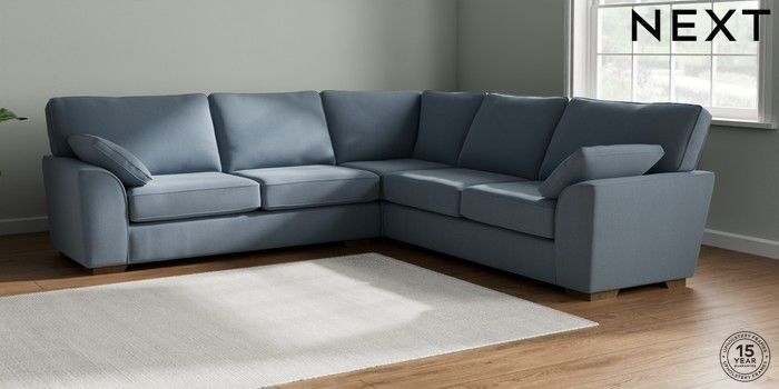 7.2.10 Buy Stamford Large Corner Sofa - Universal Relaxed Linen Look Mid Blue Large Square Angle - Mid from the Next UK online shop Click here to use our accessible website