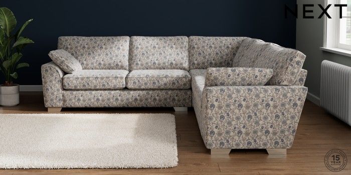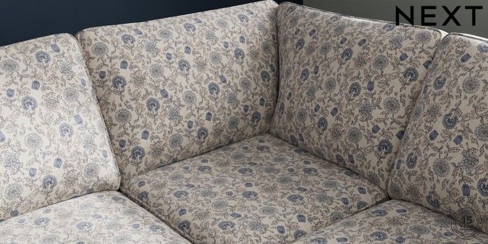 7.3.1 Buy Stamford Large Corner Sofa - Universal Relaxed Linen Look Print Woodblock Floral Blue Large Square Angle - Chrome Metal from the Next UK online shop Click here to use our accessible website