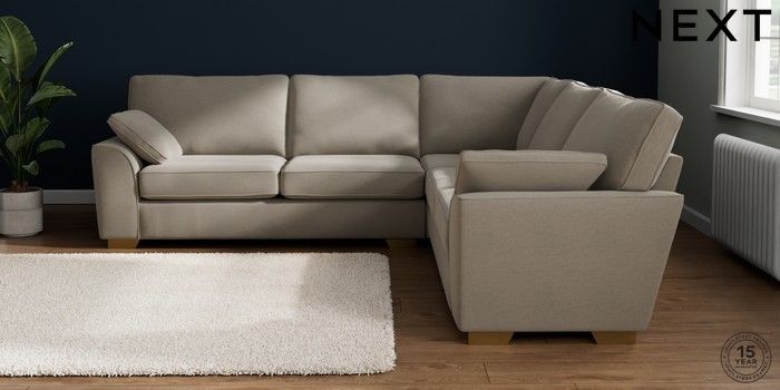 7.2.10 Buy Stamford Large Corner Sofa - Universal Ripple Chenille Light Natural Large Square Angle - Brushed Brass from the Next UK online shop Click here to use our accessible website