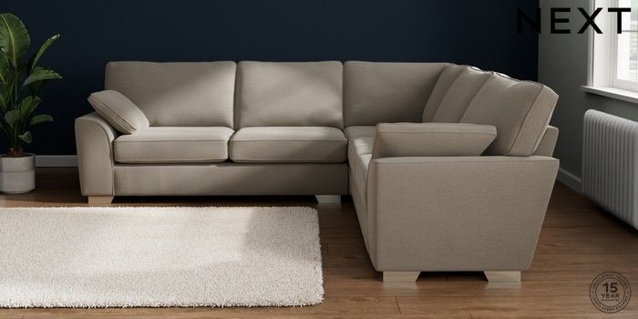 7.2.10 Buy Stamford Large Corner Sofa - Universal Ripple Chenille Light Natural Large Square Angle - Chrome Metal from the Next UK online shop Click here to use our accessible website