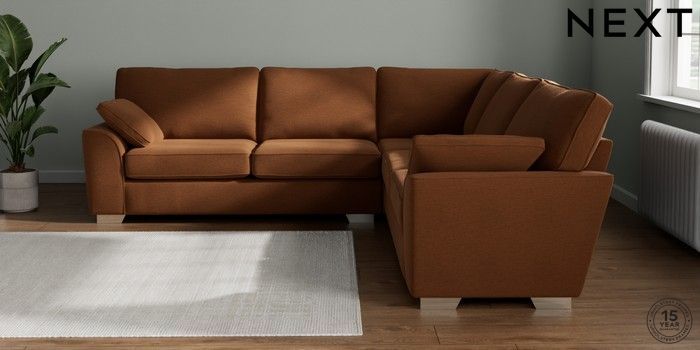 7.2.10 Buy Stamford Large Corner Sofa - Universal Ripple Chenille Mid Rust Brown Large Square Angle - Chrome Metal from the Next UK online shop Click here to use our accessible website