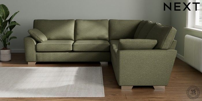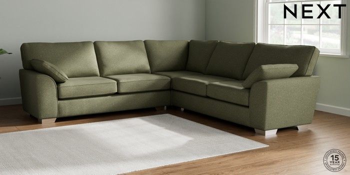 7.2.10 Buy Stamford Large Corner Sofa - Universal Tweedy Chenille Mid Moss Green Large Square Angle - Chrome Metal from the Next UK online shop Click here to use our accessible website