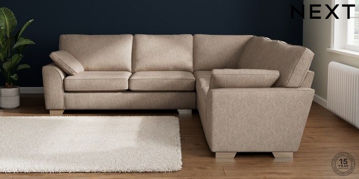7.3.1 Buy Stamford Large Corner Sofa - Universal Tweedy Chenille Mid Natural Large Square Angle - Chrome Metal from the Next UK online shop Click here to use our accessible website