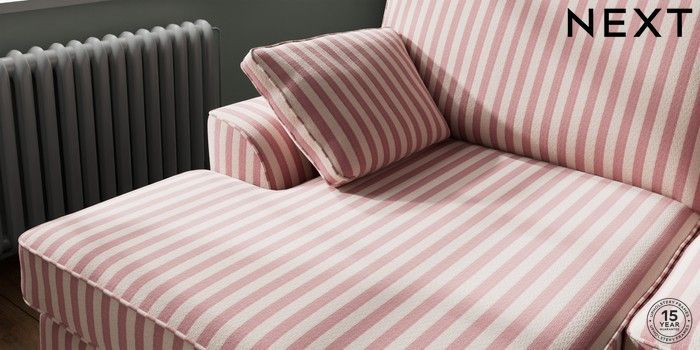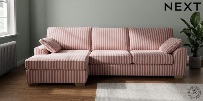 7.3.1 Buy Stamford Large Sofa Chaise - Left Hand Bold Chenille Stripe Dark Pink Large Square Angle - Brushed Brass from the Next UK online shop Click here to use our accessible website