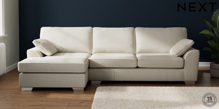 7.3.1 Buy Stamford Large Sofa Chaise - Left Hand Chenille Stripe Moss Green Large Square Angle - Chrome Metal from the Next UK online shop Click here to use our accessible website