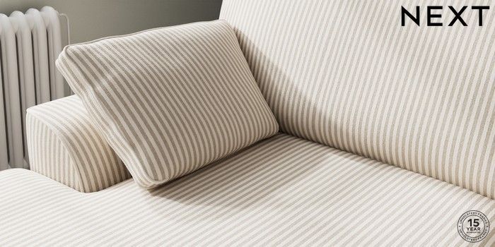 7.3.1 Buy Stamford Large Sofa Chaise - Left Hand Chenille Stripe Natural Large Square Angle - Mid from the Next UK online shop Click here to use our accessible website