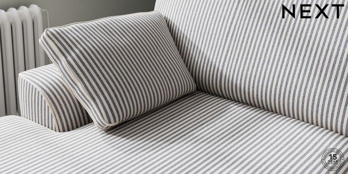 7.3.1 Buy Stamford Large Sofa Chaise - Left Hand Chenille Stripe Slate Blue Large Square Angle - Gunmetal from the Next UK online shop Click here to use our accessible website