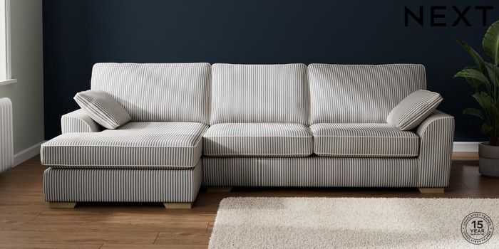 7.3.1 Buy Stamford Large Sofa Chaise - Left Hand Chenille Stripe Slate Blue Large Square Angle - Light from the Next UK online shop Click here to use our accessible website