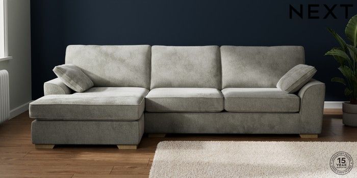7.2.10 Buy Stamford Large Sofa Chaise - Left Hand Chunky Chenille Light Grey Large Square Angle - Light from the Next UK online shop Click here to use our accessible website