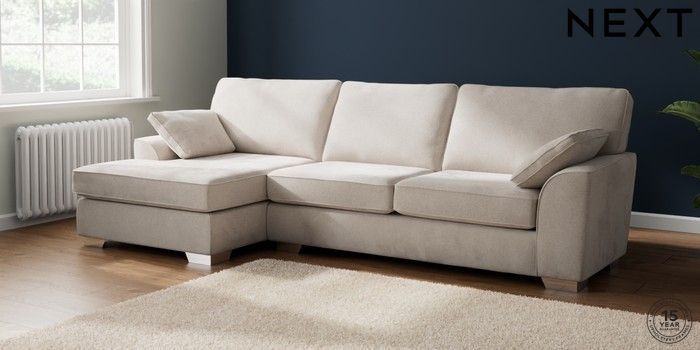 7.2.6 Buy Stamford Large Sofa Chaise - Left Hand Chunky Chenille Oyster Large Square Angle - Chrome Metal from the Next UK online shop Click here to use our accessible website