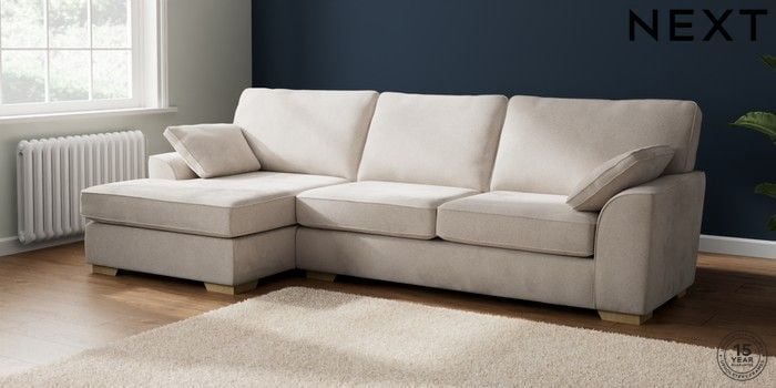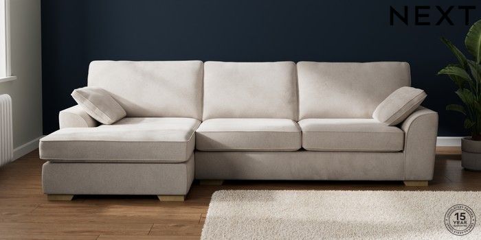7.2.10 Buy Stamford Large Sofa Chaise - Left Hand Chunky Chenille Oyster Large Square Angle - Light from the Next UK online shop Click here to use our accessible website
