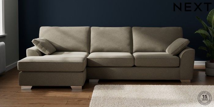 7.2.10 Buy Stamford Large Sofa Chaise - Left Hand Chunky Marl Light Olive Green Large Square Angle - Chrome Metal from the Next UK online shop Click here to use our accessible website