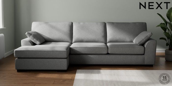 7.2.10 Buy Stamford Large Sofa Chaise - Left Hand Chunky Weave Mid Grey Large Square Angle - Dark from the Next UK online shop Click here to use our accessible website