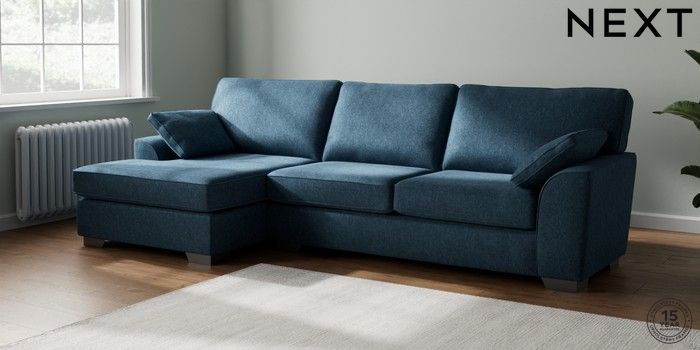 7.2.10 Buy Stamford Large Sofa Chaise - Left Hand Cotswold Chenille Dark Blue Large Square Angle - Gunmetal from the Next UK online shop Click here to use our accessible website