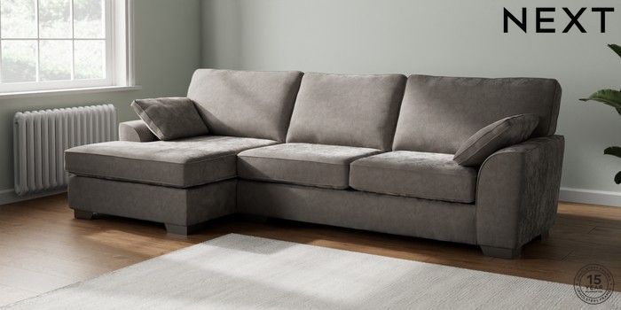 7.3.1 Buy Stamford Large Sofa Chaise - Left Hand Distressed Velour French Grey Large Square Angle - Gunmetal from the Next UK online shop Click here to use our accessible website