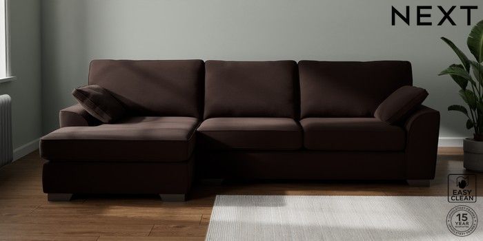 7.3.1 Buy Stamford Large Sofa Chaise - Left Hand Fine Chenille Easy Clean Chocolate Brown Large Square Angle - Gunmetal from the Next UK online shop Click here to use our accessible website