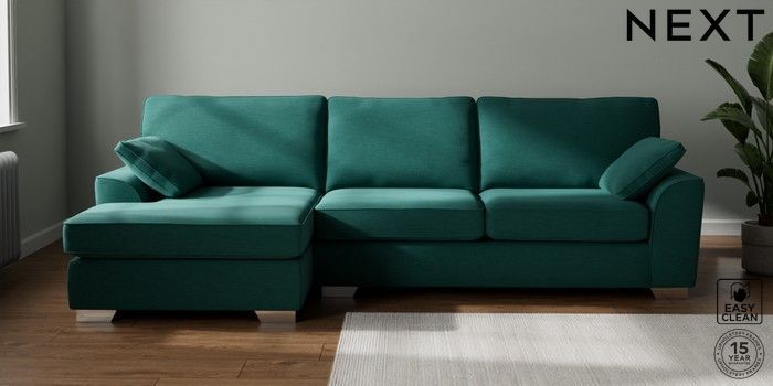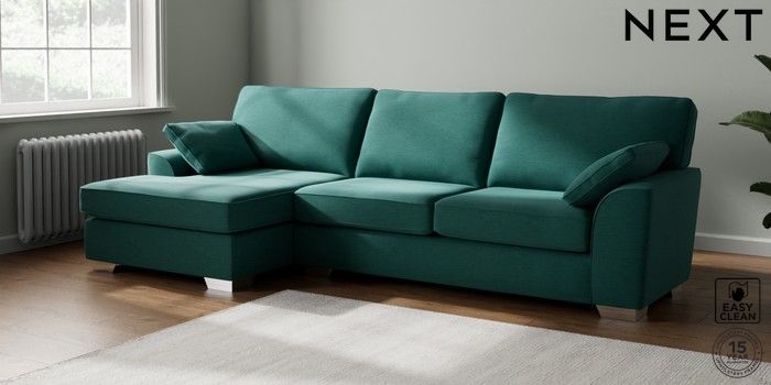 7.3.1 Buy Stamford Large Sofa Chaise - Left Hand Fine Chenille Easy Clean Dark Juniper Green Large Square Angle - Chrome Metal from the Next UK online shop Click here to use our accessible website