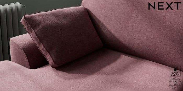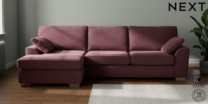 7.3.1 Buy Stamford Large Sofa Chaise - Left Hand Fine Chenille Easy Clean Mid Mulberry Purple Large Square Angle - Brushed Brass from the Next UK online shop Click here to use our accessible website