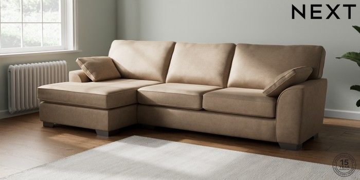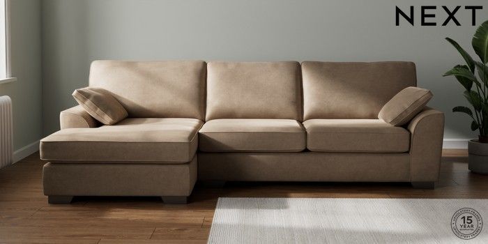 7.2.10 Buy Stamford Large Sofa Chaise - Left Hand Luxe Chenille Mid Camel Beige Large Square Angle - Gunmetal from the Next UK online shop Click here to use our accessible website