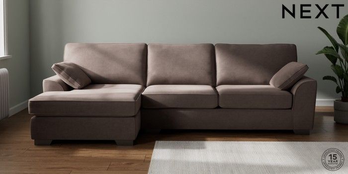 7.2.10 Buy Stamford Large Sofa Chaise - Left Hand Luxe Chenille Mink Brown Large Square Angle - Gunmetal from the Next UK online shop Click here to use our accessible website