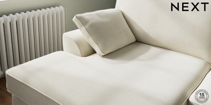 7.0.3 Buy Stamford Large Sofa Chaise - Left Hand Luxe Chenille Oyster Large Square Angle - Brushed Brass from the Next UK online shop Click here to use our accessible website