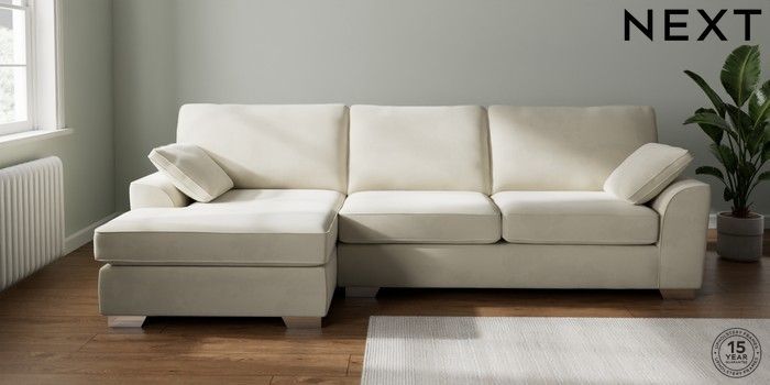 7.0.3 Buy Stamford Large Sofa Chaise - Left Hand Luxe Chenille Oyster Large Square Angle - Chrome Metal from the Next UK online shop Click here to use our accessible website