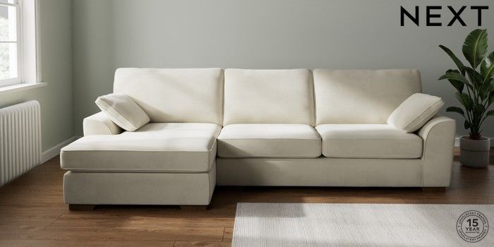 7.0.3 Buy Stamford Large Sofa Chaise - Left Hand Luxe Chenille Oyster Large Square Angle - Mid from the Next UK online shop Click here to use our accessible website