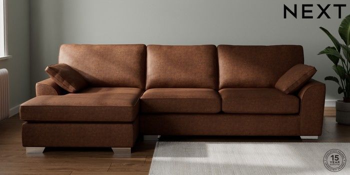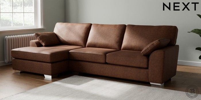 7.3.1 Buy Stamford Large Sofa Chaise - Left Hand Monza Faux Leather Easy Clean Chestnut Brown Large Square Angle - Chrome Metal from the Next UK online shop Click here to use our accessible website