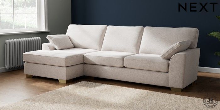 7.2.6 Buy Stamford Large Sofa Chaise - Left Hand Multi Weave Oyster Large Square Angle - Brushed Brass from the Next UK online shop Click here to use our accessible website