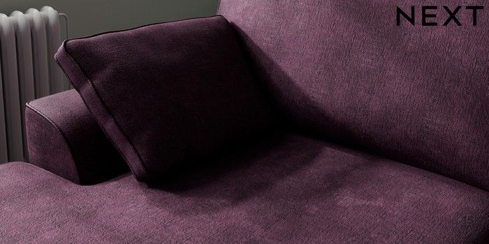 7.3.1 Buy Stamford Large Sofa Chaise - Left Hand Plush Chenille Dark Plum Purple Large Square Angle - Chrome Metal from the Next UK online shop Click here to use our accessible website