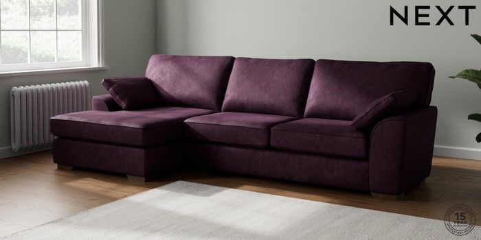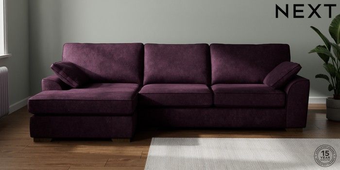 7.2.10 Buy Stamford Large Sofa Chaise - Left Hand Plush Chenille Dark Plum Purple Large Square Angle - Mid from the Next UK online shop Click here to use our accessible website