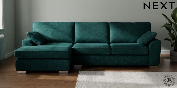7.2.10 Buy Stamford Large Sofa Chaise - Left Hand Plush Chenille Dark Teal Green Large Square Angle - Chrome Metal from the Next UK online shop Click here to use our accessible website