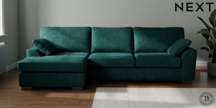 7.3.1 Buy Stamford Large Sofa Chaise - Left Hand Plush Chenille Dark Teal Green Large Square Angle - Gunmetal from the Next UK online shop Click here to use our accessible website