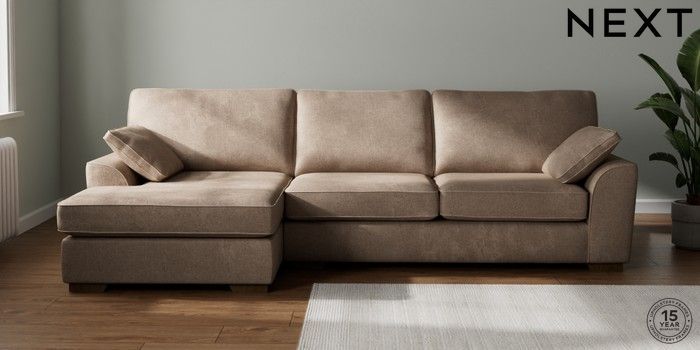 7.2.10 Buy Stamford Large Sofa Chaise - Left Hand Plush Chenille Mid Natural Large Square Angle - Mid from the Next UK online shop Click here to use our accessible website