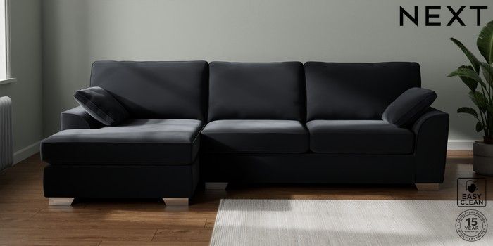 7.2.10 Buy Stamford Large Sofa Chaise - Left Hand Plush Velvet Easy Clean Charcoal Grey Large Square Angle - Chrome Metal from the Next UK online shop Click here to use our accessible website