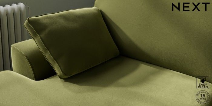 7.3.1 Buy Stamford Large Sofa Chaise - Left Hand Plush Velvet Easy Clean Mid Olive Green Large Square Angle - Gunmetal from the Next UK online shop Click here to use our accessible website