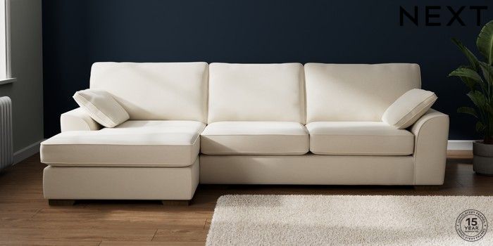 7.2.6 Buy Stamford Large Sofa Chaise - Left Hand Ripple Chenille Oyster Large Square Angle - Mid from the Next UK online shop Click here to use our accessible website