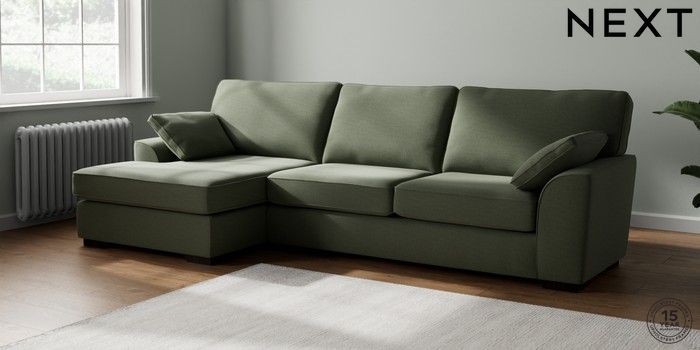 7.3.1 Buy Stamford Large Sofa Chaise - Left Hand Relaxed Linen Look Dark Green Large Square Angle - Dark from the Next UK online shop Click here to use our accessible website