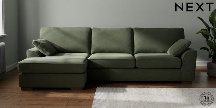 7.3.1 Buy Stamford Large Sofa Chaise - Left Hand Relaxed Linen Look Dark Green Large Square Angle - Mid from the Next UK online shop Click here to use our accessible website