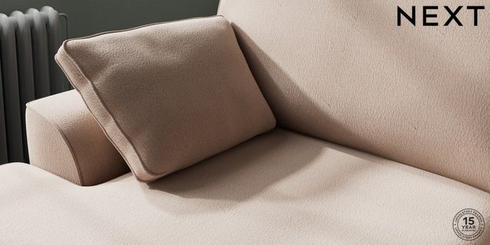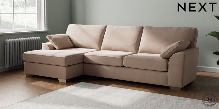 7.3.1 Buy Stamford Large Sofa Chaise - Left Hand Relaxed Linen Look Mid Natural Large Square Angle - Brushed Brass from the Next UK online shop Click here to use our accessible website