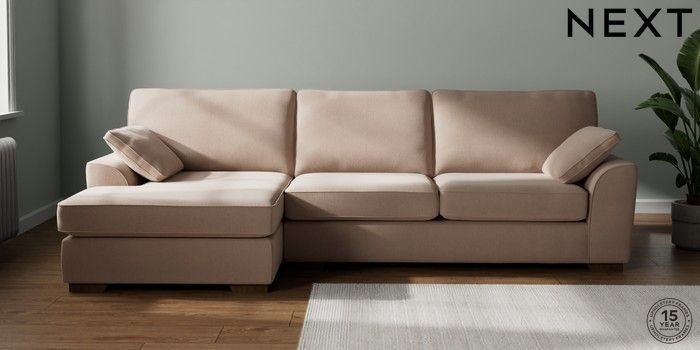 7.2.10 Buy Stamford Large Sofa Chaise - Left Hand Relaxed Linen Look Mid Natural Large Square Angle - Mid from the Next UK online shop Click here to use our accessible website