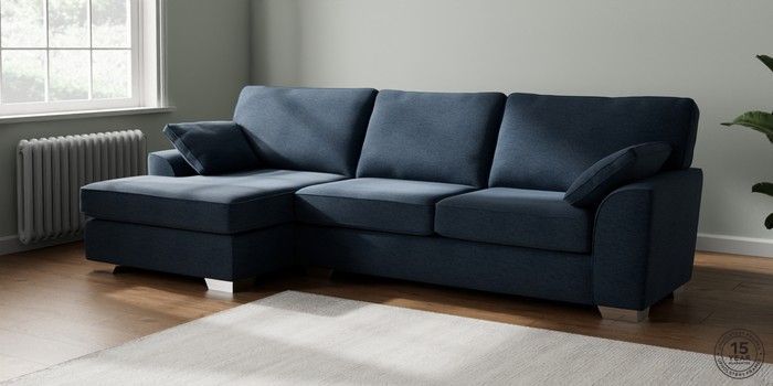 6.12.1 Buy Stamford Large Sofa Chaise - Left Hand Ripple Chenille Dark Blue Large Square Angle - Chrome Metal from the Next UK online shop Click here to use our accessible website