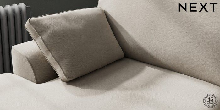 7.2.10 Buy Stamford Large Sofa Chaise - Left Hand Ripple Chenille Light Natural Large Square Angle - Brushed Brass from the Next UK online shop Click here to use our accessible website