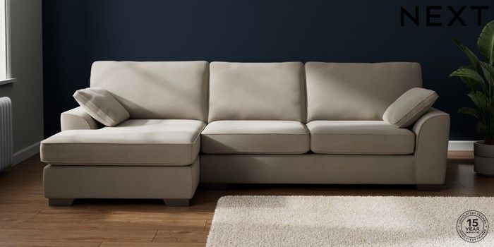 7.2.10 Buy Stamford Large Sofa Chaise - Left Hand Ripple Chenille Light Natural Large Square Angle - Gunmetal from the Next UK online shop Click here to use our accessible website